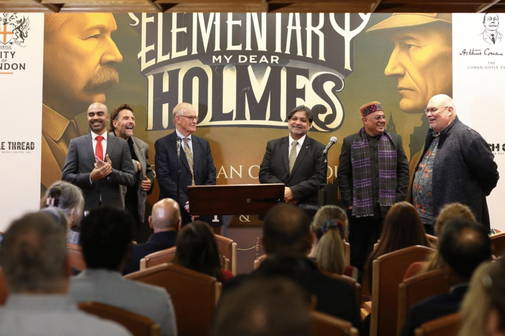 এই ঘোষণার সময়ে উপস্থিত ছিলেন বিএফআই বোর্ড অব গভর্নর্স-এর সদস্যরা, ব্রিটিশ কাউন্সিলের চলচ্চিত্র বিভাগের ,কোনান ডয়েল এস্টেট এবং ডয়েল পরিবারের সদস্য সহ বহু বিশিষ্ট ব্যক্তি। লন্ডনের গিল্ড হল থেকে সৃজিত জানিয়েছেন, শার্লক হোমসের কাছে তাঁকে পৌঁছে দিয়েছেন যে সাহিত্যিক তাঁকে নিয়ে গল্প বলার তাগিদ অনুভব করছেন।পরিচালকের বক্তব্য, ‘এলিমেন্টারি মাই ডিয়ার হোমস’-এ ডয়েল তাঁর কল্পনার জগতে প্রবেশ করছেন। চলচ্চিত্রটি শুরু হয় মিসেস গিলক্রিস্টের হত্যাকাণ্ড এবং অস্কার স্লেটারের ভুল গ্রেপ্তারের ঘটনা দিয়ে। কিন্তু আমার আগ্রহ অপরাধে নয় — বরং সেই মানুষটিকে ঘিরে, যিনি দেখছেন তাঁর কল্পনা বাস্তবের সঙ্গে মিশে যাচ্ছে। যখন কারও সৃষ্টি তাঁকেই তদন্তের মুখে দাঁড় করিয়ে দেয়, তখন কী ঘটে, তার অনুসন্ধান এই ছবি।”