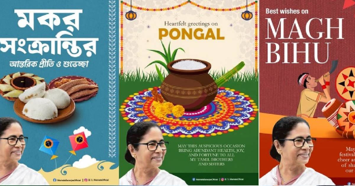 পৌষের সংক্রান্তিতে দেশজুড়ে উৎসবের আবহ। একদিকে মকর সংক্রান্তি, অন্যদিকে দক্ষিণ ভারতের পোঙ্গল, সঙ্গে উত্তর-পূর্ব ভারতের মাঘ বিহু, পশ্চিম ভারতে পালিত হচ্ছে লোরি —সব মিলিয়ে গোটা দেশে বিভিন্ন সংস্কৃতির উৎসব যেন এক সুতোয় বাঁধা। এই উৎসবমুখর পরিবেশে বাংলার মুখ্যমন্ত্রী মমতা বন্দ্যোপাধ্যায় (Mamata Banerjee) তাঁর সোশ্যাল মিডিয়া মাধ্যমে দেশবাসীকে শুভেচ্ছা জানিয়েছেন।